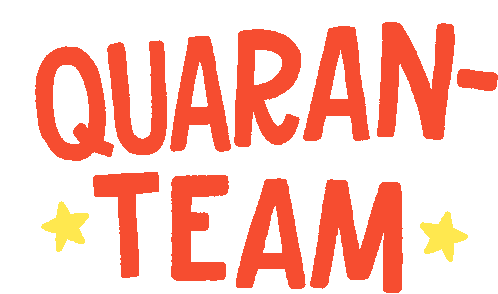 Animated red text spelling 'QUARAN-TEAM' with yellow stars, symbolizing unity during quarantine and remote work.