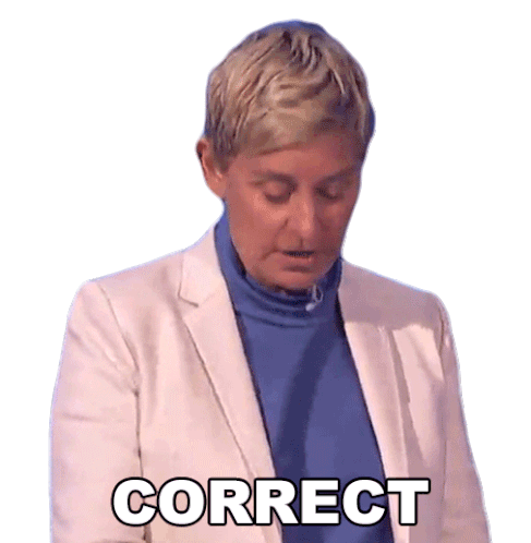 Ellen DeGeneres gives a knowing look, confirming 'Correct' in this animated sticker.