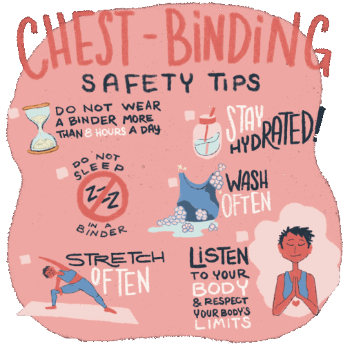 Corrieliotta presents an animated infographic detailing essential chest-binding safety tips for trans individuals.