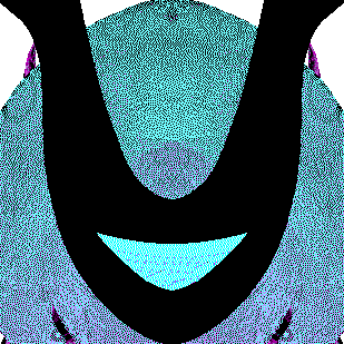 a close up of a cartoon character 's head with purple horns