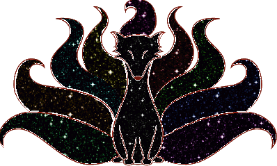 A sparkling animated Cosmo Fox, a mythical nine-tailed fox, shimmering with cosmic glitter and vibrant colors.