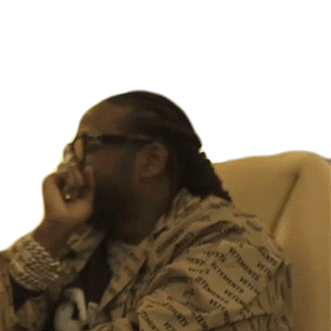 Rapper 2 Chainz, wearing a Vetements jacket, sits and coughs, looking unwell or unimpressed.