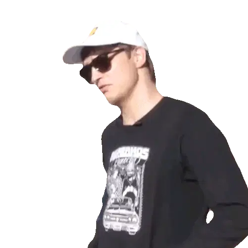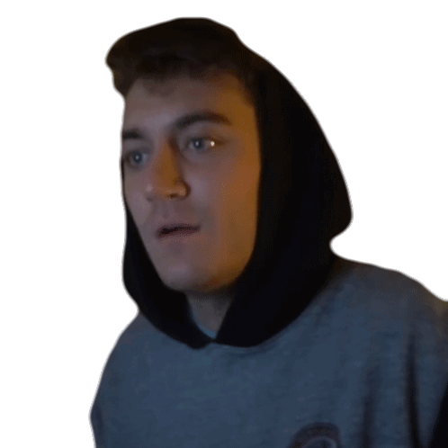 Casey Frey, wearing a hoodie, makes a humorous face while appearing to cough or clear his throat with a sarcastic 'ehem' gesture.