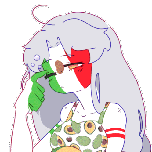 Country Humans Mexico, wearing an avocado-patterned top, looks pensive while touching their face. A cute and thoughtful moment.