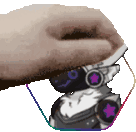 A pixel art sticker featuring a hand gently patting a small, cute toy robot, associated with CR Gamer501 and Pat Pat.