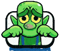 a green cartoon character with yellow eyes is making a sad face with his hands on his face .