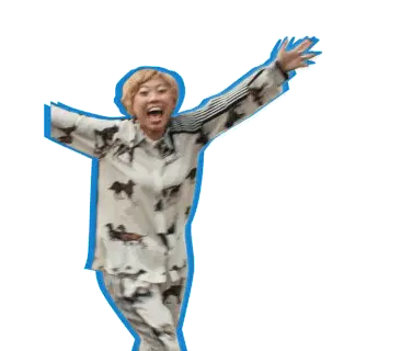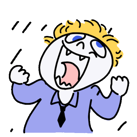 An animated sticker of a quirky, hand-drawn character with a wild expression, conveying a 'crazy' or 'cray-cray' mood.