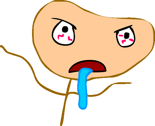 An animated sticker of a crazy potato head with bloodshot eyes, drooling, possibly reacting to a super hard quiz.