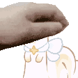 An animated sticker featuring a person's hand gently patting the head of a cute Cream Ferret Cookie cartoon character.