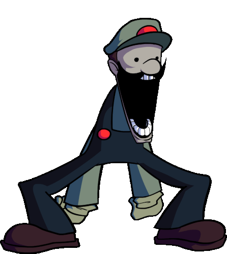 A terrifying Creepypasta version of Luigi, with a distorted face, wide mouth, and stretched limbs, in a menacing pose.