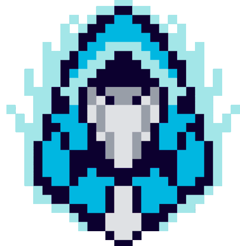 Crexthemage, a pixel art wizard or mage, depicted with a blue hooded cloak and glowing magical aura.