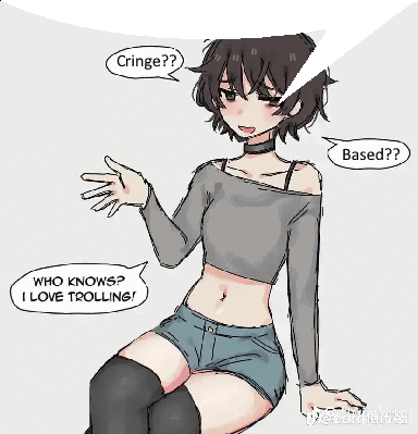 a drawing of a girl with a speech bubble that says cringe and based