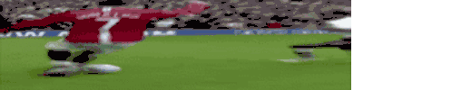 Cristiano Ronaldo, wearing his iconic number 7 red jersey, performs a dynamic slide on a green football pitch.