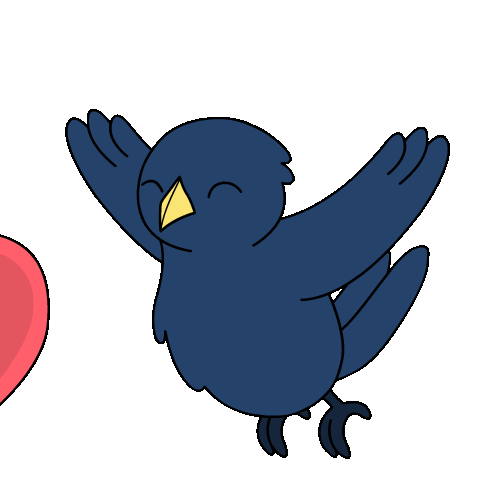 A cute blue crow bird is surrounded by many red hearts, expressing love and happiness in an adorable way.