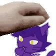 Coco Grimalkin, the purple Crowpunk character from Purrfect Apawcalypse, happily gets petted on the head.