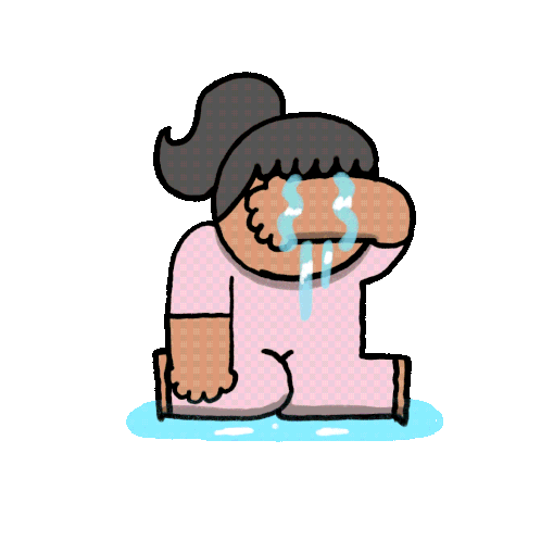 a cartoon of a woman kneeling down with tears coming out of her eyes