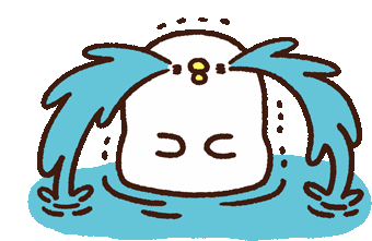 A cute, sad cartoon character is crying a flood of blue tears, forming a puddle around itself.