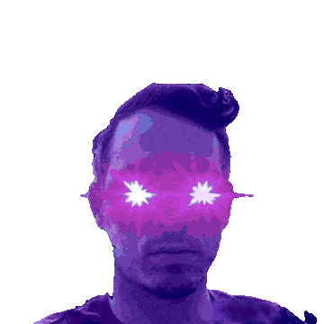 A pixelated purple head with glowing laser eyes, symbolizing intense focus or power within the 'Crypto Blockchain' space.