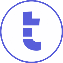 An animated sticker featuring a stylized blue 't' logo, representing cryptocurrency and blockchain technology.