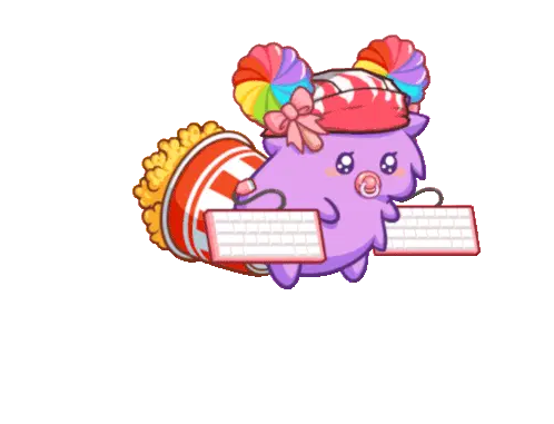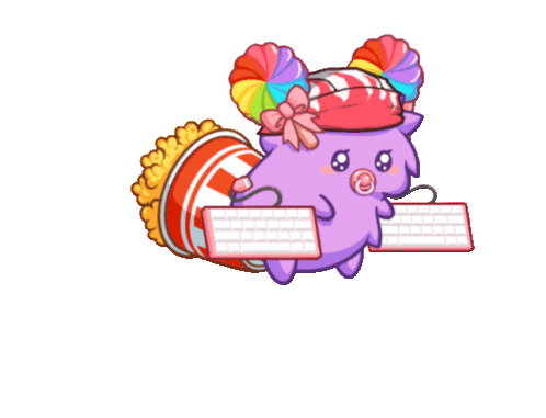 A cute Cryptoid character, Wetty, with lollipop pigtails types 'I love you' on two keyboards.