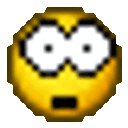 A pixel art emoji with wide eyes and a small mouth, expressing surprise or shock.