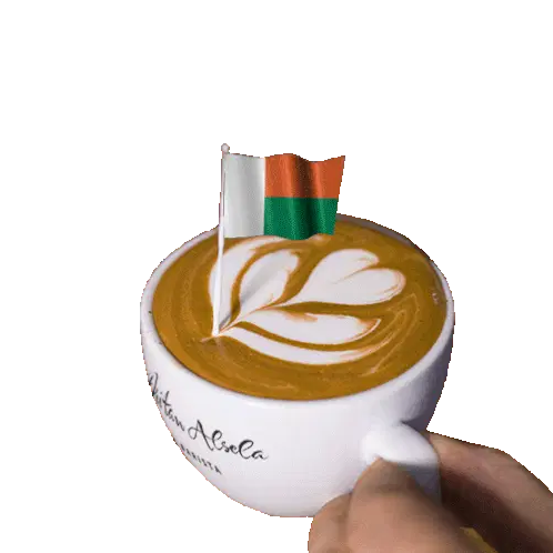 A delicious cup of coffee with intricate latte art, featuring the flag of Cuba proudly displayed. Perfect for coffee lovers and Cuban pride.
