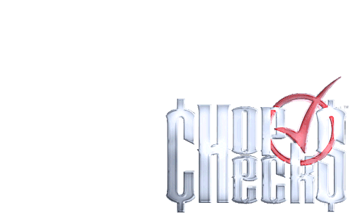 Noshakywork's metallic 'CHOP CHECK' logo with a red checkmark, smoothly spinning as a 3D cube sticker.