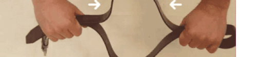 a person is holding a pair of flip flops with an arrow pointing to the right