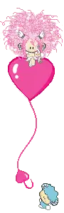 Animated pixel art sticker of Curly Hair Bboguri as Alice, holding a heart balloon with 'Be You' text.