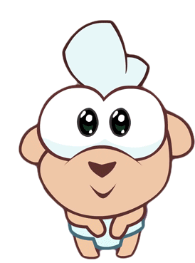 Adorable baby Om Nom character with big, cute eyes, smiling and wearing a diaper, looking sweet and charming.