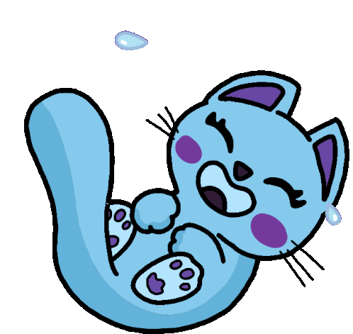 Jorrparivar's Happy Independent Billee, a cute blue cartoon cat, laughs joyfully while lying on its back with paws up.