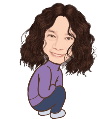 A cute cartoon character with dark curly hair, wearing a purple sweater, squats down and cries profusely.