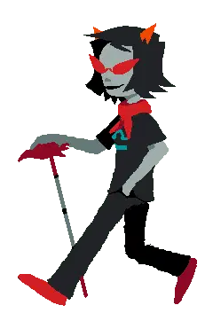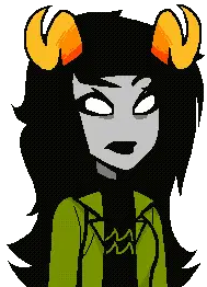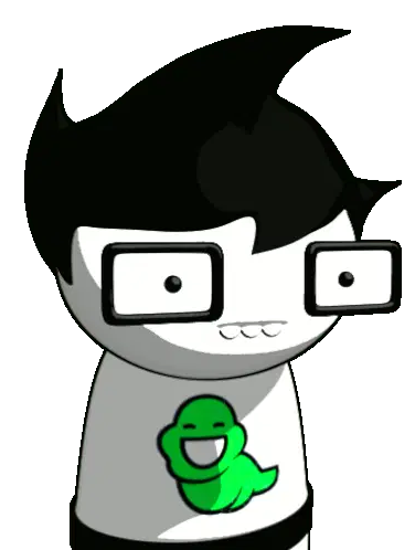 Jade Harley from Homestuck, a black and white character, looking through her distinctive cylinder eyes with an atom symbol on her shirt.