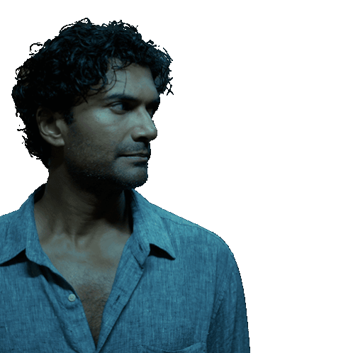 Sendhil Ramamurthy looks on as the word 'ZYADA' appears, implying 'too much' or 'you're saying too much'.