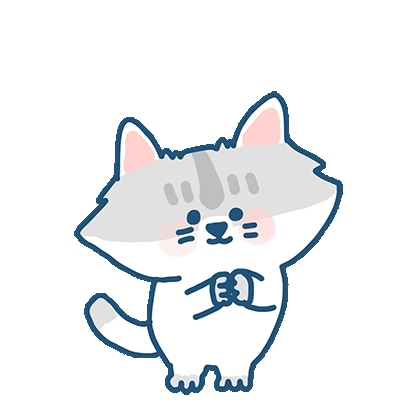 An adorable grey and white cartoon cat with a yellow butterfly on its face wiggles happily, perfect for a cheerful greeting.