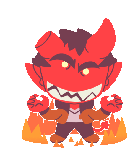 Damien Lavey, the chaotic glitch demon from Monster Prom, depicted with sharp teeth and a fiery red aesthetic.