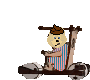 Danarco Biggie, a cartoon character, enjoys a lively scooter ride, featuring a fun nod to the Flintstones Car.