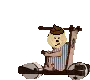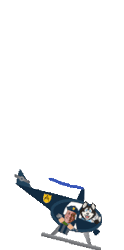 Danarco and Hosky the husky dog fly together in a pixelated blue helicopter, a fun retro-style animated sticker.