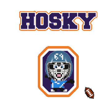 Danarco Hosky, a pixel art football player in a blue uniform with number 69, holds a football, ready for action.