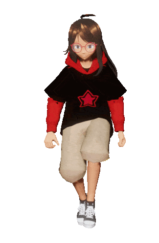 a girl wearing a black shirt with a red star on the front