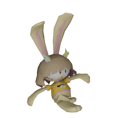 a cartoon rabbit wearing a yellow shirt and a pink bikini