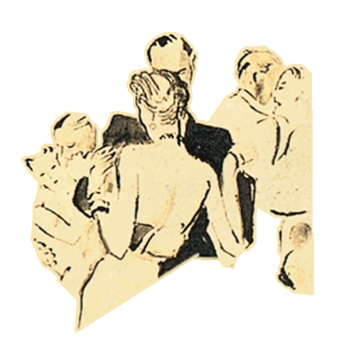Vintage illustration of couples dancing, inspired by Bryan Ferry, with a gentle, swaying animation.