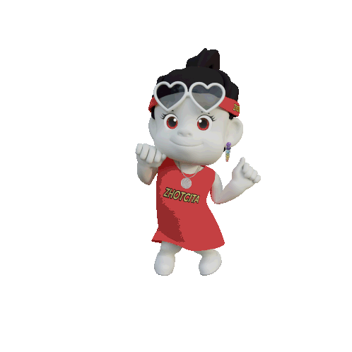 a cartoon character is wearing a red shirt that says ' zhouta ' on it