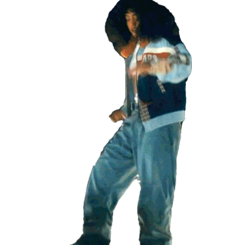 Jenevieve dances energetically, moving her body and hips in a stylish outfit with a jacket and baggy pants.