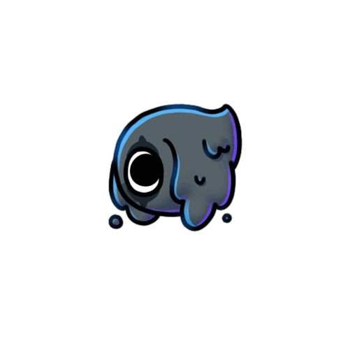 a cartoon drawing of a ghost with a black eye and a crescent moon