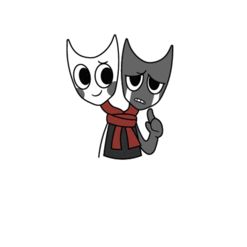 a cartoon of two cats wearing masks and scarves . one of the masks is smiling and the other is crying .