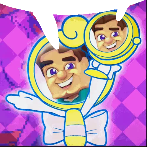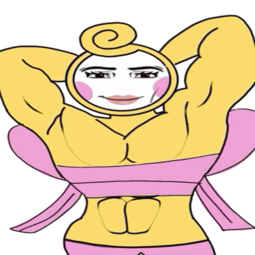 a cartoon drawing of a woman with muscles and a swirl on her head