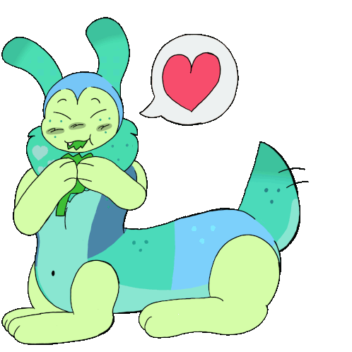 a cartoon drawing of a green and blue monster with a heart in a speech bubble