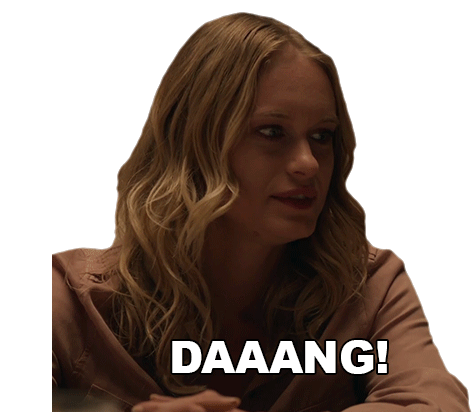 Harper Tucker and Leven Ramekin react with an impressed 'DAAANG!' in this sticker from The Forever Purge.