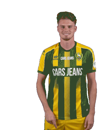 a man wearing a green and yellow jersey that says cars jeans on it